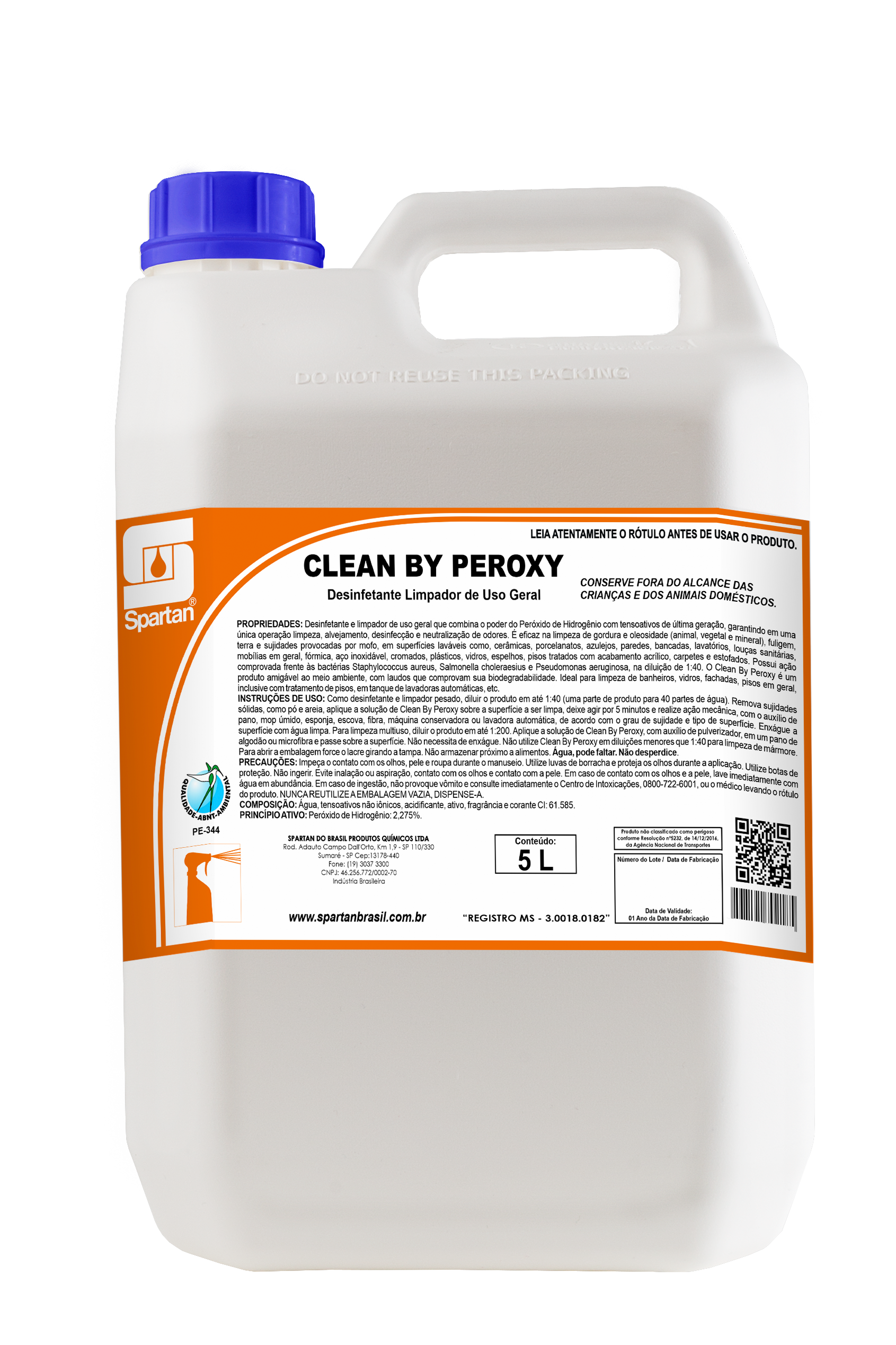 O Clean by Peroxy é um desinfetante e limpador de uso geral de alta performance da Spartan, desenvolvido para limpeza profunda, desinfecção e neutralização de odores em uma única aplicação. Sua fórmula combina o poder do Peróxido de Hidrogênio com tensoativos de última geração, proporcionando ação eficaz contra gorduras, fuligem, terra, mofo e microrganismos em superfícies laváveis profissionais, como pisos, paredes, bancadas, azulejos, aço inox, vidro e fórmica.
